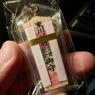 この交通安全御守を、車内のどこに設置するか思案中~。