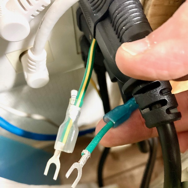 今回の延長アース線側のY字端子をアース接続口にぶっ挿し〼。