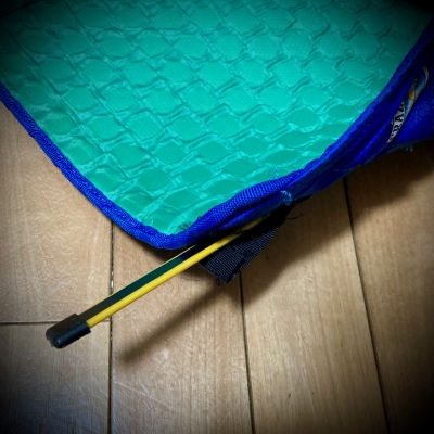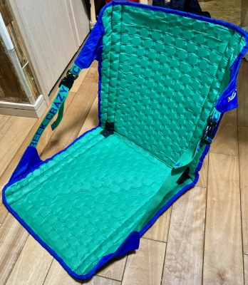 長年使い続けてきた折りたたみチェアの縫製の一端がほつれて、バーが飛び出た!!!