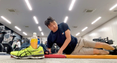 一方 自分はというと、(目下のところ主に遠泳の為の) 筋持久力や体幹力が目的なので、ウェイトやマシンはそこそこに、毎度、地味ぃな「自重トレ」がメイン。。。