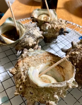 長浜鮮魚市場(前記事)でGETした、サザエ&クジラ刺身、昨日の晩に実食。最高最高w