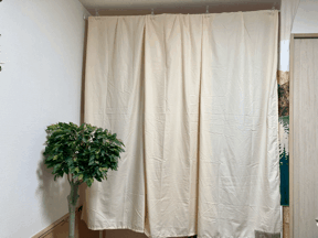 突っ張り棒&DAISOのカフェカーテンをドア前に。