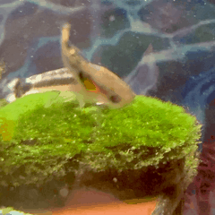 7 herb rice porridge 2023 セリ! ナズナ! ゴギョウ! ハコベラ! ホトケノザ! スズナ! スズシロ! 夜行性のオトシンクルスちゃんが珍しく日中に活動。フェイク苔石をチューチュー。 夜の練りエサ、足りないとかいなぁ~?? したっけ。