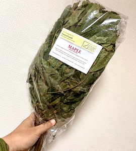 ヴィヒタは白樺が定番らしいけど、型崩れしにくい&画的に良いという理由で、葉が大きいメープル(かえだ)をあえてチョイス。